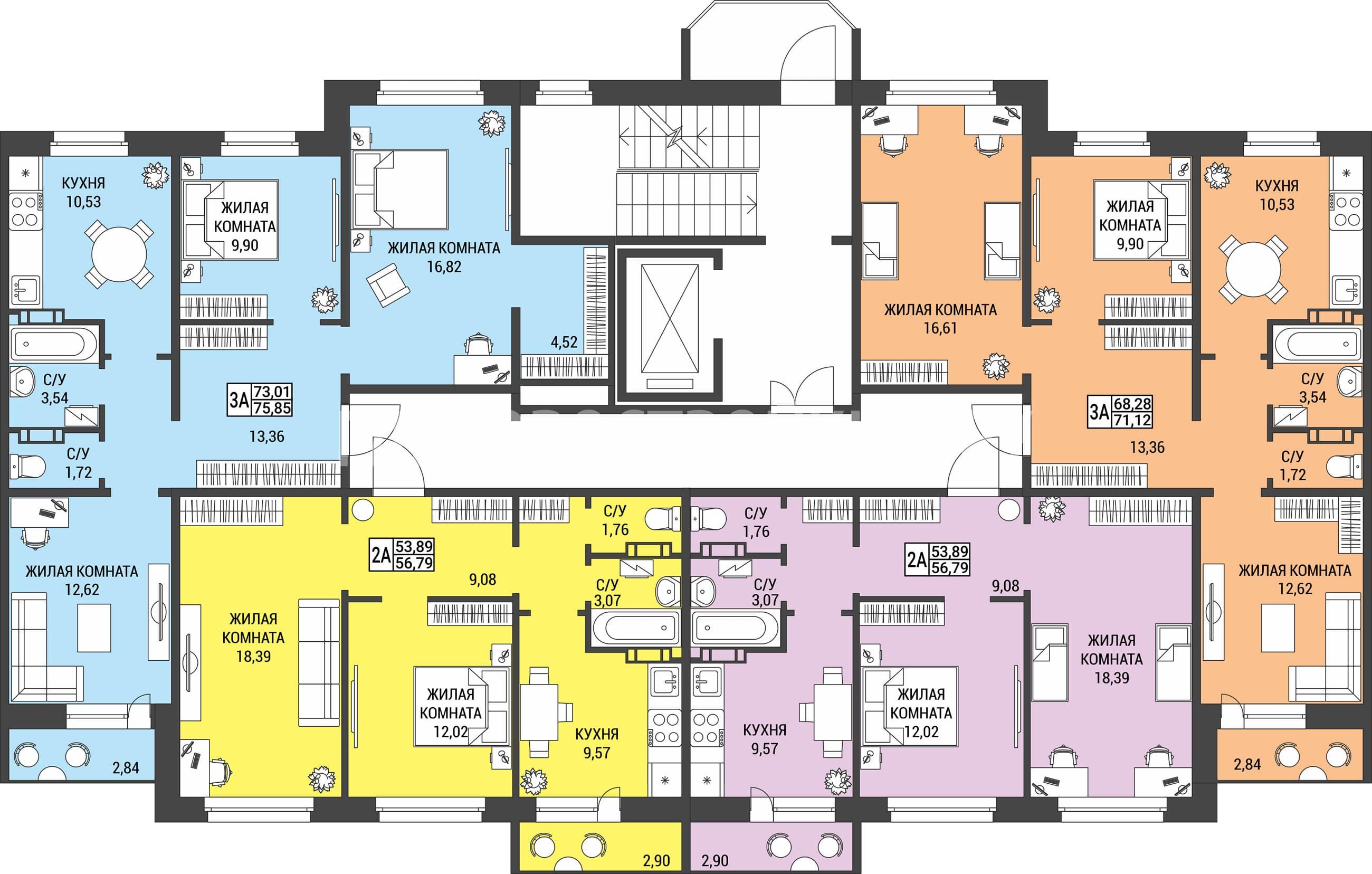 | 3-комн. | от 68.28 кв.м | от 8.54 млн. ₽ |
