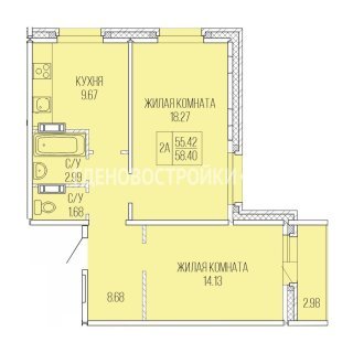 2-комн.Площадь: 55.42м2