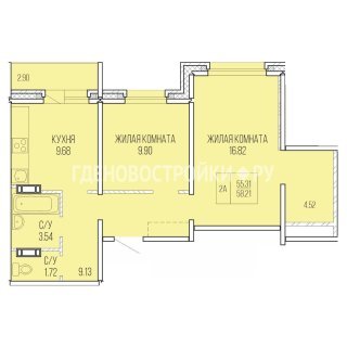 Продажа квартиры: 2-комн., 55.31 кв.м, 6.91 млн.руб. (id:153727)