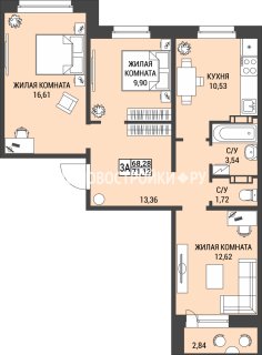 Продажа квартиры: 3-комн., 68.28 кв.м, 8.54 млн.руб. (id:169883)
