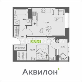 Продажа квартиры: 1-комн., 37.71 кв.м, 6.87 млн.руб. (id:125719)