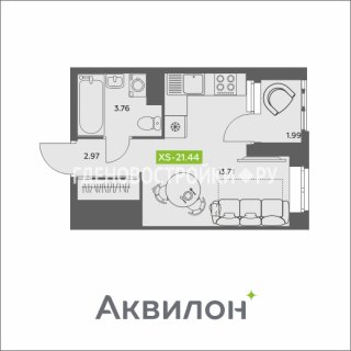 СтудияПлощадь: 21.44м2