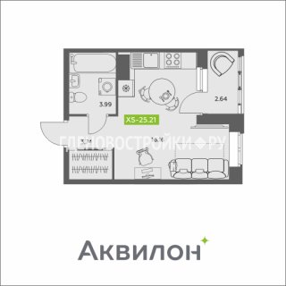 СтудияПлощадь: 25.21м2