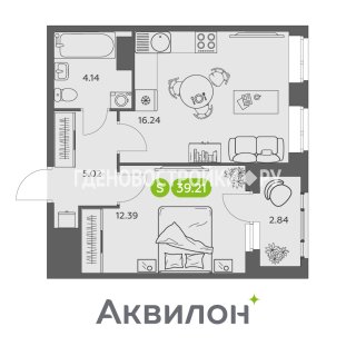 Продажа квартиры: 1-комн., 39.21 кв.м, 6.85 млн.руб. (id:171991)