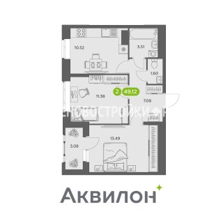 2-комн.Площадь: 49.12м2