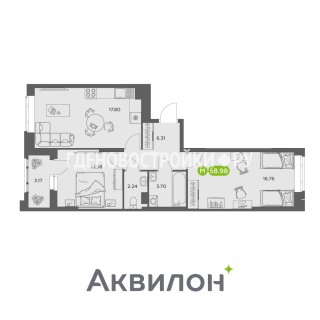 2-комн.Площадь: 58.98м2
