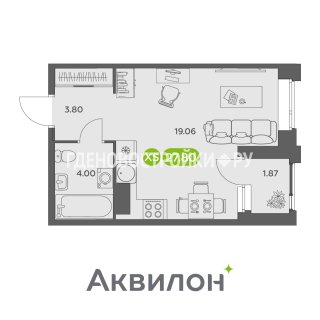 СтудияПлощадь: 27.8м2