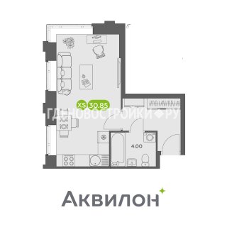 СтудияПлощадь: 30.85м2