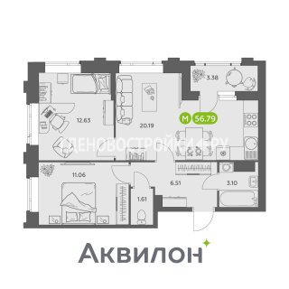 2-комн.Площадь: 56.79м2