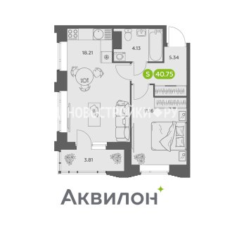 Продажа квартиры: 1-комн., 40.75 кв.м, 8.07 млн.руб. (id:172049)