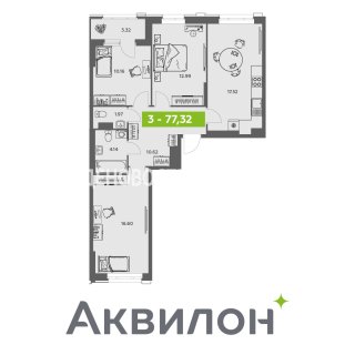 3-комн.Площадь: 77.32м2