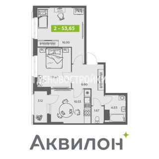 2-комн.Площадь: 53.65м2