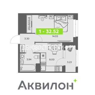 Продажа квартиры: 1-комн., 32.52 кв.м, 5.57 млн.руб. (id:170198)