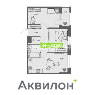 2-комн.Площадь: 52.9м2