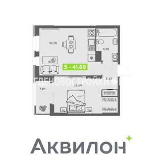 Продажа квартиры: 1-комн., 41.89 кв.м, 6.64 млн.руб. (id:170219)