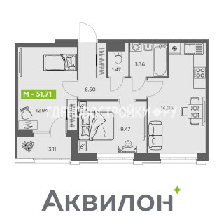 2-комн.Площадь: 51.71м2