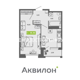 1-комн.Площадь: 35.35м2