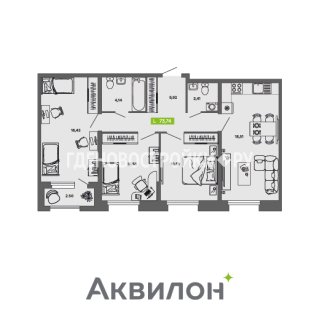 3-комн.Площадь: 73.74м2