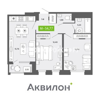 2-комн.Площадь: 54.77м2