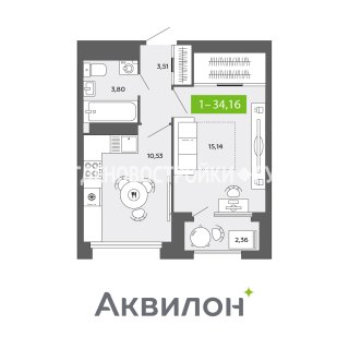 Продажа квартиры: 1-комн., 34.16 кв.м, 6.65 млн.руб. (id:160146)