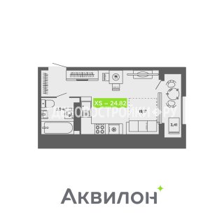 СтудияПлощадь: 24.82м2
