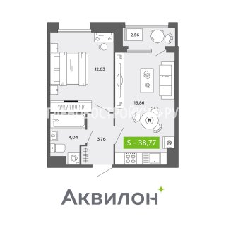 1-комн.Площадь: 38.77м2