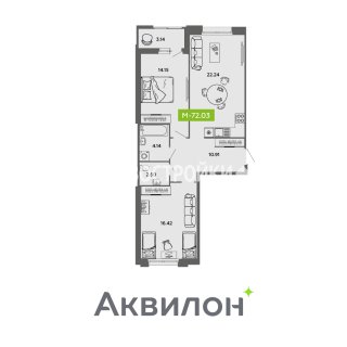 2-комн.Площадь: 72.03м2