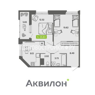 Продажа квартиры: 2-комн., 53.64 кв.м, 8.85 млн.руб. (id:162249)