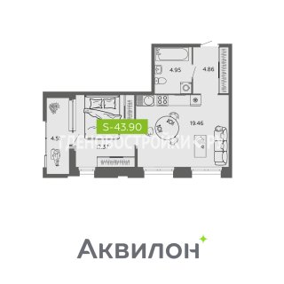 Продажа квартиры: 1-комн., 43.9 кв.м, 6.34 млн.руб. (id:162253)