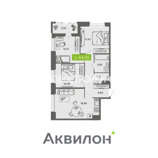 3-комн.Площадь: 64.55м2