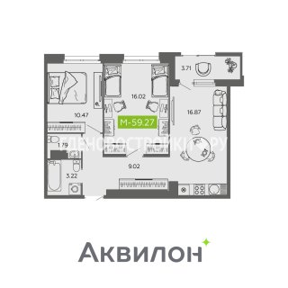 2-комн.Площадь: 59.27м2