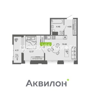 1-комн.Площадь: 43.43м2