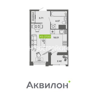 СтудияПлощадь: 27м2