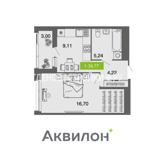 Продажа квартиры: 1-комн., 36.77 кв.м, 6.13 млн.руб. (id:162428)
