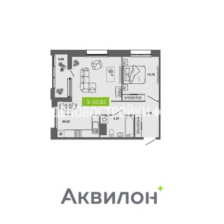 1-комн.Площадь: 50.82м2
