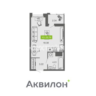 СтудияПлощадь: 26.78м2