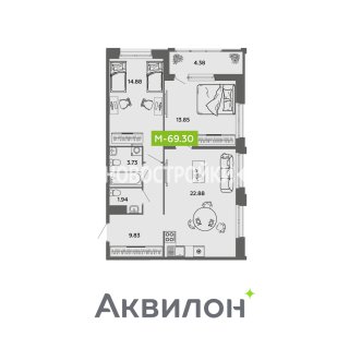 Продажа квартиры: 2-комн., 69.3 кв.м, 10.57 млн.руб. (id:172328)