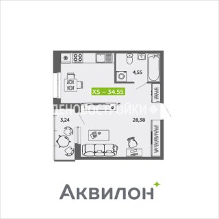 Продажа квартиры: Студия, 34.55 кв.м, 5.11 млн.руб. (id:125340)