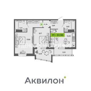Продажа квартиры: 2-комн., 61.96 кв.м, 8.91 млн.руб. (id:172416)