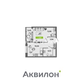 Продажа квартиры: 1-комн., 33.43 кв.м, 5.09 млн.руб. (id:172419)