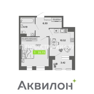 Продажа квартиры: 1-комн., 35.73 кв.м, 6.38 млн.руб. (id:151289)