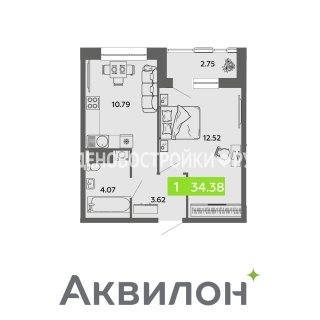 1-комн.Площадь: 34.38м2