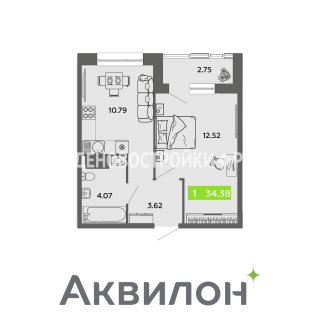 Продажа квартиры: 1-комн., 34.38 кв.м, 6.02 млн.руб. (id:163808)