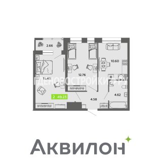 2-комн.Площадь: 49.23м2