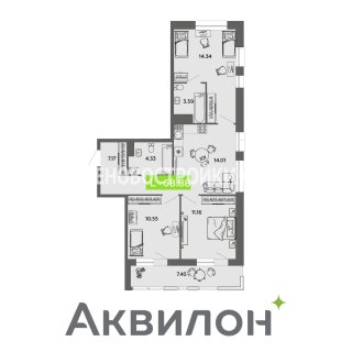 Продажа квартиры: 3-комн., 68.88 кв.м, 10.59 млн.руб. (id:166563)