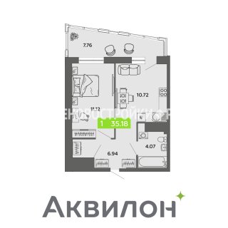 1-комн.Площадь: 35.18м2