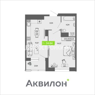 1-комн.Площадь: 34.84м2