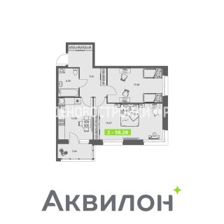 2-комн.Площадь: 58.28м2