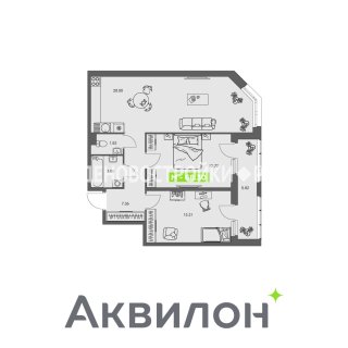 2-комн.Площадь: 68.3м2