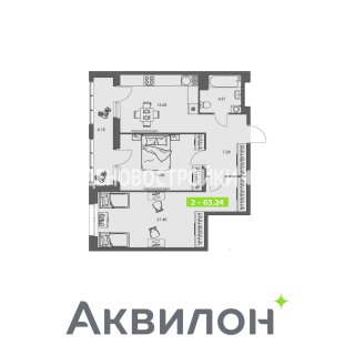 2-комн.Площадь: 63.24м2